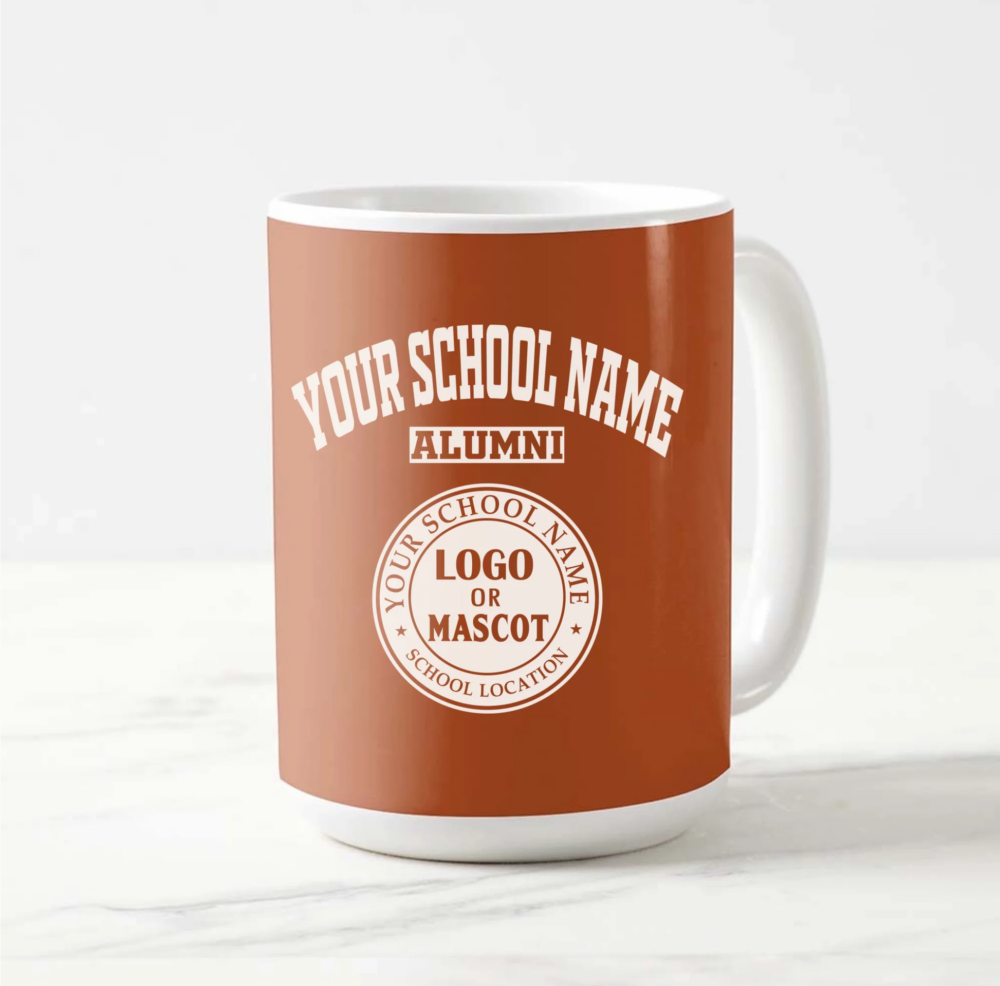 Embrace a timeless tradition with our personalized classic logo ceramic mug. Perfect for any proud graduate, this mug features your school's cherished emblem in a classic, collegiate-style design. It's more than just custom alumni gear; it's a daily reminder of your journey and your enduring school pride, perfect for your morning coffee or evening tea.